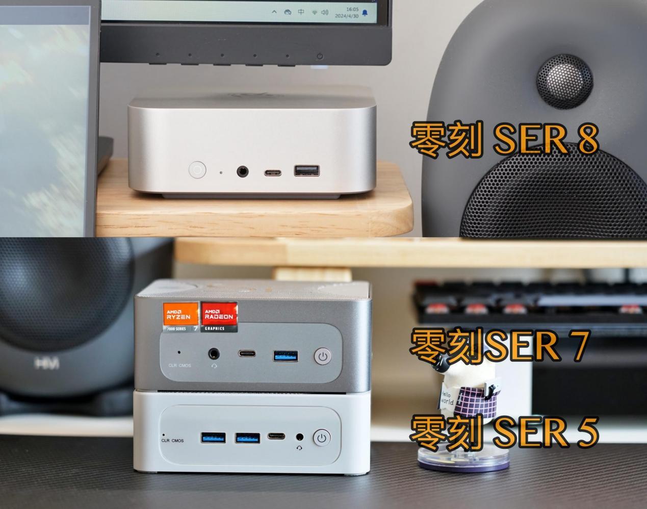 那有没有更好的迷你主机散热方案,能不能在提升性能的同时把温度再降一降、噪声降一降?真还有啊!近期憋了半年大招,零刻推出了全新设计的零刻ser8系列迷你主机。下图是零刻ser8与ser7、ser5的对比: