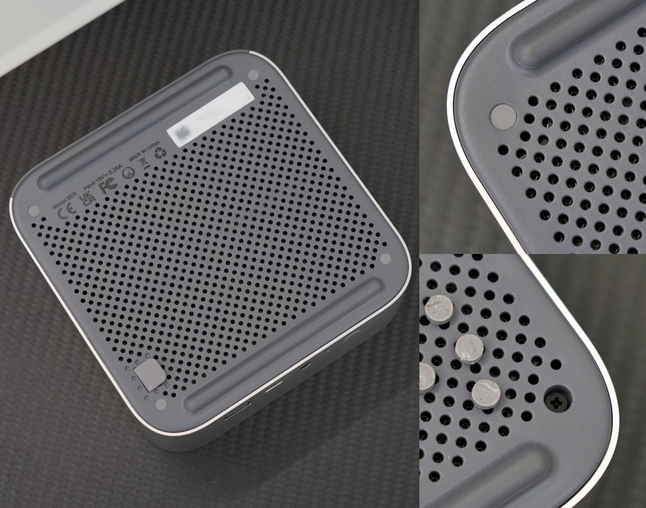 零刻ser8这次是真的彻底改了!体积13.5cm*13.5cm*4.47cm,依旧依旧不到1l,带系统的32gb 1tb版本重量也就775g,主机内部采用msc2.0散热系统,取消了系统风扇,cpu风扇采用了从主机底部进风、后侧出风的高效风道设计,细节优化改进很明显。