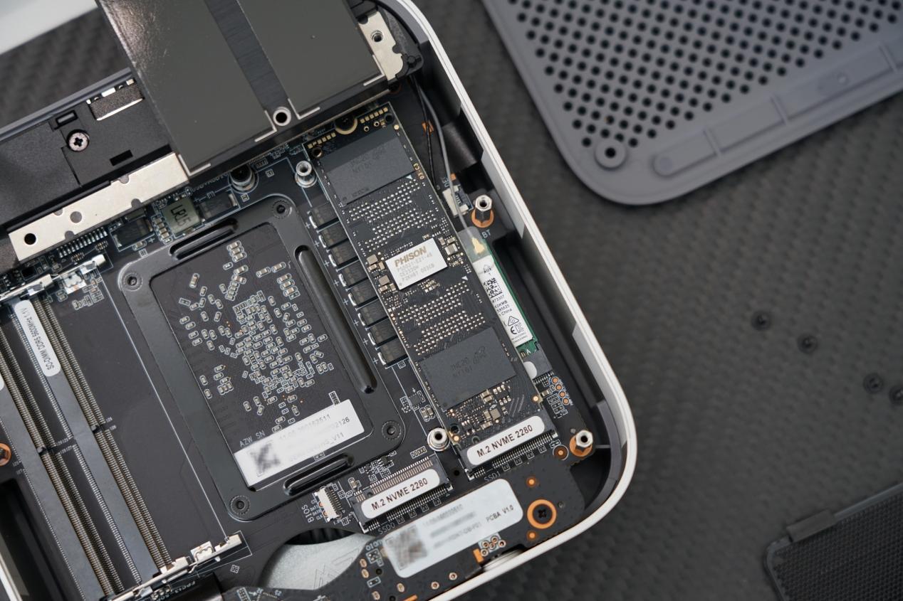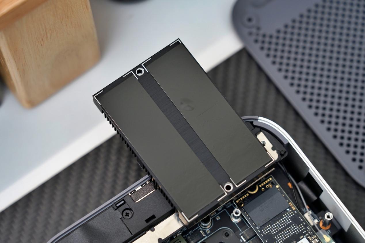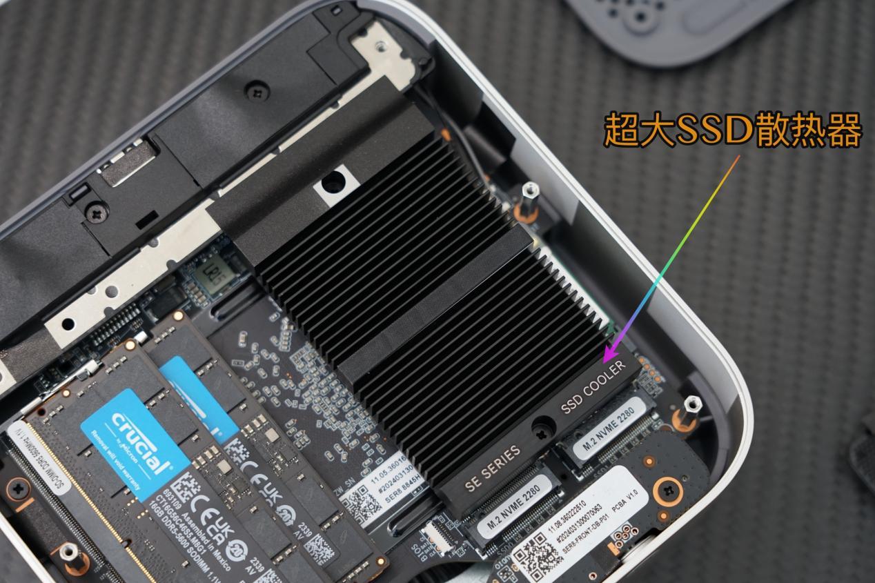 同时,这款主机ssd固态硬盘,在取消系统小风扇后也是增加了一个非常大的散热器,完全覆盖双ssd卡槽。