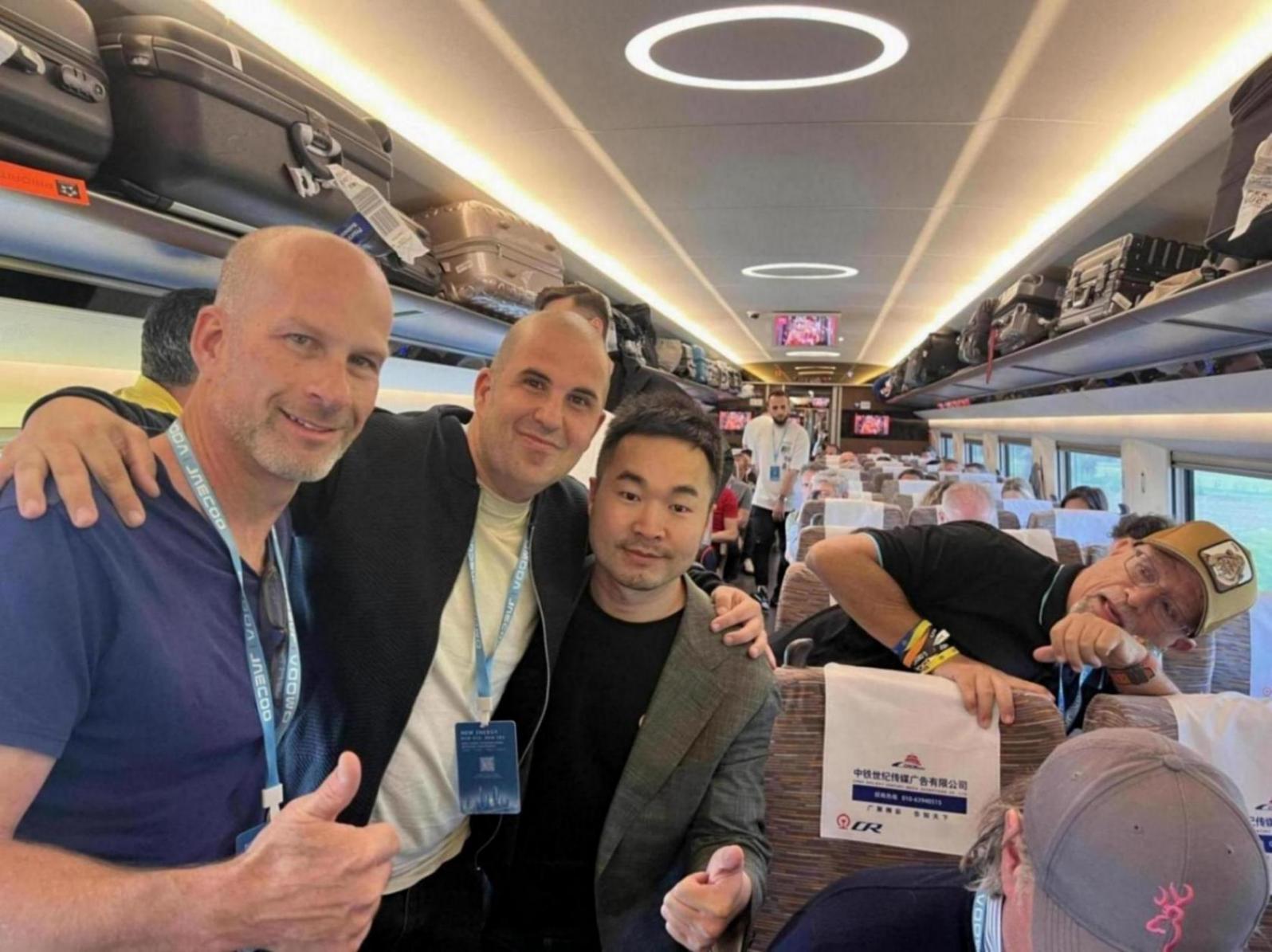 奇瑞品牌营销中心总经理助理黄伟冲在带着外国有人去往芜湖的专列上