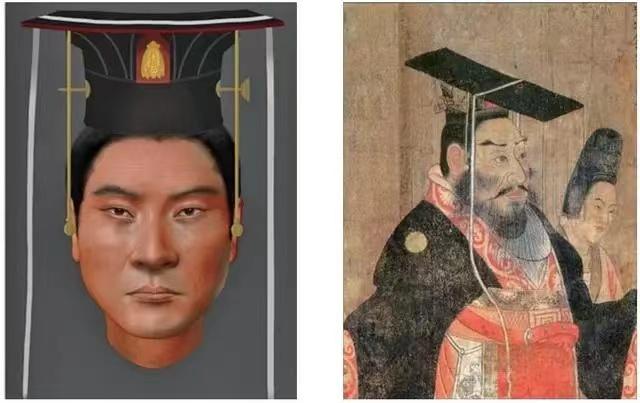 左为宇文邕面貌基因复原图,右为唐代阎立本绘制的《历代帝王图》中宇文邕形象。图片来自 陕西省考古研究院
