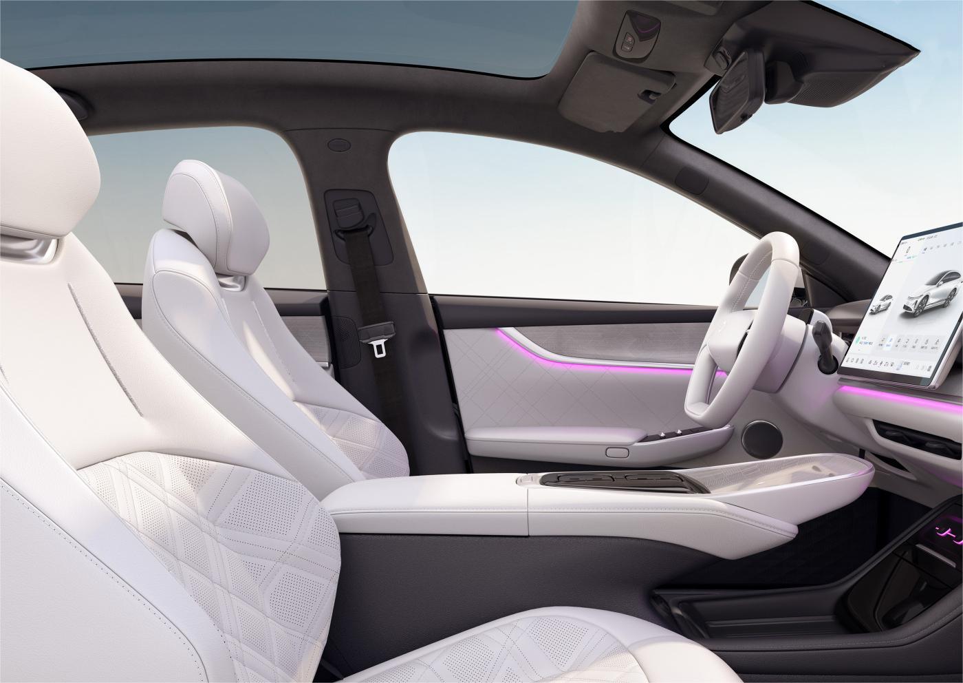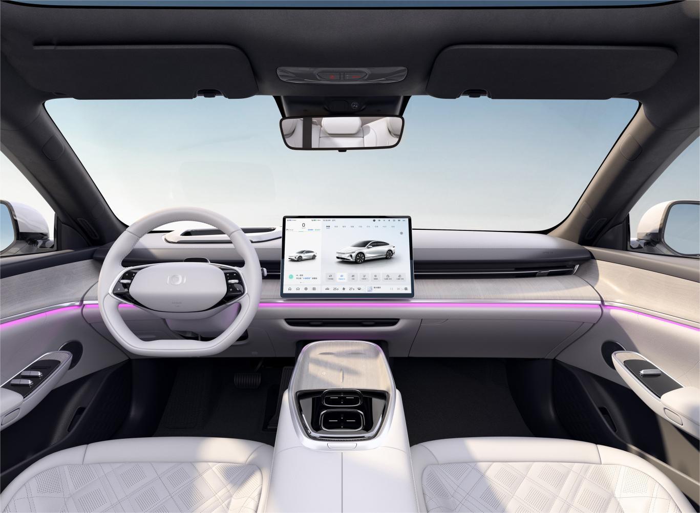 长安启源a07内饰以“悬浮岛屿”为设计灵感,形成环抱式风格,整体视觉感受较为简约。另外,新车还取消了传统的仪表板设计,转而采用ar-hud抬头显示系统,搭配15.4英寸悬浮式中控屏幕和造型新颖的双辐式多功能方向盘科技感十足。与此同时,该车还在中控台等处采用实木触感的木纹饰板进行点缀,并且ab柱、顶棚处使用仿麂皮材质包覆,还提供浅云灰、赤缇红、薄雾绿三款内饰配色风格可选。