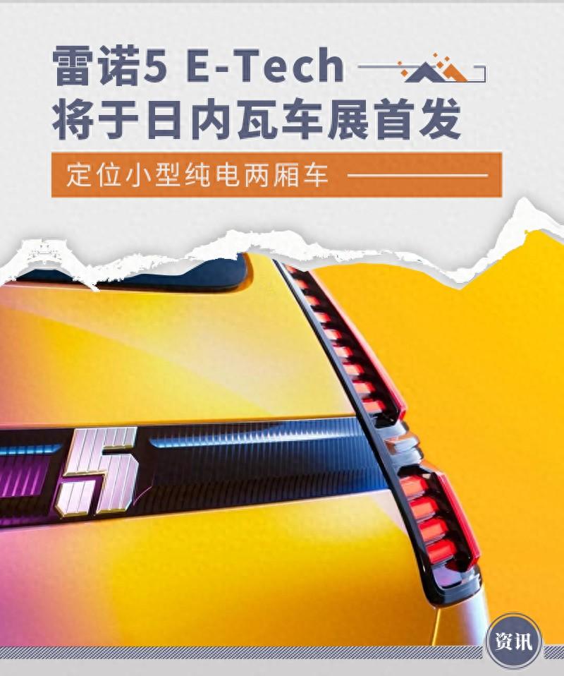 在2024年2月26日开幕的第91届日内瓦国际车展上,雷诺5 e-tech纯电版将全球首发亮相,新车定位小型纯电两厢车。外观方面,雷诺5 e-tech延续了概念车的设计风格,前脸独特样式led大灯中间由贯穿式灯带相连,中间搭配可以点亮的logo,具有辨识度。动力方面,新车预计将搭载52kwh的电池组,wltp续航里程达400km。