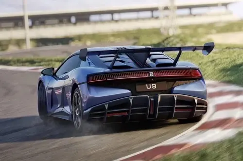 仰望u9搭载了易四方四电机技术,四个电机的总和峰值功率可达960千瓦,综合峰值扭矩为1680牛·米,峰值转速为21000转。0-100公里/小时的加速时间为2.36秒,0-400米加速时间为9.78秒,最高时速达到309.19公里/小时。该车在上海国际赛车场的单圈成绩为2分17.65秒。同时,该车采用了易四方u型电机设计,尺寸更紧凑、重心更低,配合双电机、双电控深度集成设计,更加适应跑车的空气动力学和轻量化设计需求。
