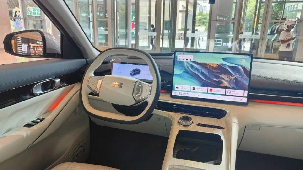 内饰方面,吉利银河e5采用了15.4英寸2.5k高清中控大屏与10.2英寸全液晶仪表屏和超大画幅hud抬头显示系统的组合,科技感非常强烈。在龍鷹一号芯片、16g运行内存、吉利星睿智算中心超强算力等领先智能硬件的支持下,银河flyme auto可带来联动强、交互快、语音快等优秀交互体验,可在500毫秒内对用户的语音指令做出反馈,可实现高频场景免唤醒、领悟模糊指令、持续交互对话、离线对话、全场景可见即可说等功能。
