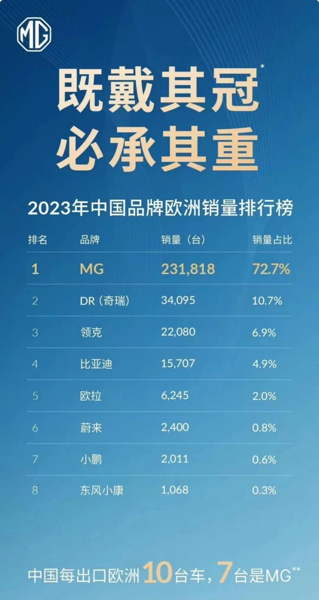 今年1-5月,上汽海外终端交付达46万辆,同比增长17.8%。其中上汽旗下的出海主力mg品牌仅在欧洲就销售超过10万辆,实现“中国每出口欧洲10台车,就有7台是mg。”