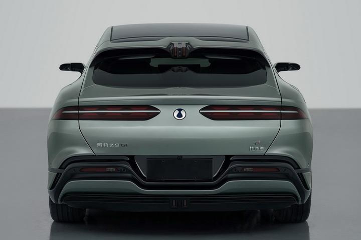 腾势z9是一款大型纯电豪华gt轿跑,同时也是腾势汽车的旗舰车型,采用旅行车的车身结构设计,提供纯电版和插混版可选。新车前脸为日冕(solar diadem)设计语言,狭长的前大灯组造型犹如“双眼皮”,车身侧面采用溜背式车身设计,下方还有一根灵动的线条从车头延伸至车尾;尾部配备狭长的尾灯组,内部元素以沙漏为设计灵感,顶部配备了两段式镂空扰流板,中央为高位刹车灯。