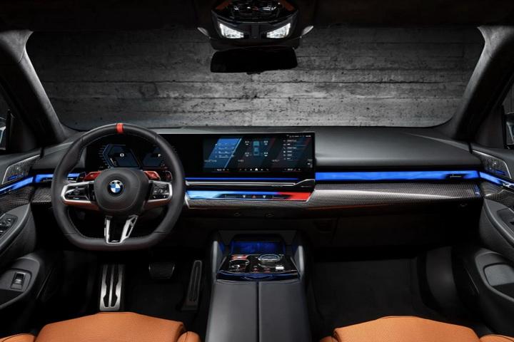全新宝马m5的内饰采用了全新的设计语言,搭载12.3英寸的数字仪表盘和14.9英寸的中控触摸屏,配合最新的idrive 8.5车机系统,为驾驶者提供了面部识别、语音交互、在线网络、ota升级等丰富的信息展示和便捷的交互体验。同时,车内还配备了bowers & wilkins环绕音响系统、抬头显示和sky lounge全景车顶等豪华配置,为乘客提供了更加舒适和愉悦的驾乘环境。