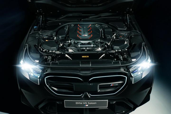 全新宝马m5首次采用源自宝马m hybrid v8赛车的混动技术,该插电式混合动力系统由4.4t v8发动机 电池 电动机组成,综合输出功率达到了惊人的727马力,综合扭矩更是高达1000牛·米,匹配八速m steptronic变速箱,0至100公里/小时加速时间3.5秒,最高车速250公里/小时,wltp纯电续航67-69公里。