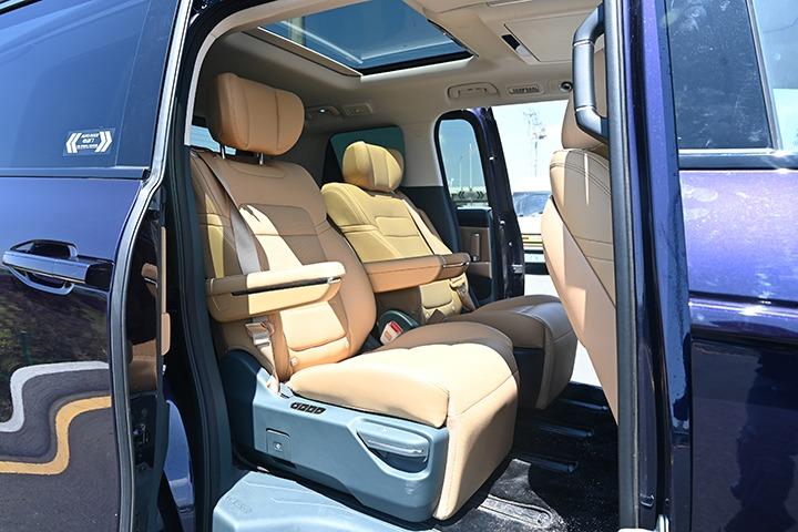 毕竟定位为mpv,相比理想l7、问界m7这些中大型suv的五、六座设计,传祺e8采用的是大三排7座设计,其中二排还支持前后调节,加上双侧电动滑门的加持,空间布局更多变灵活,大四座、躺睡模式、太空躺模式随意切换。即使是一家七口出行,也能在车内轻松找到舒适的座位。