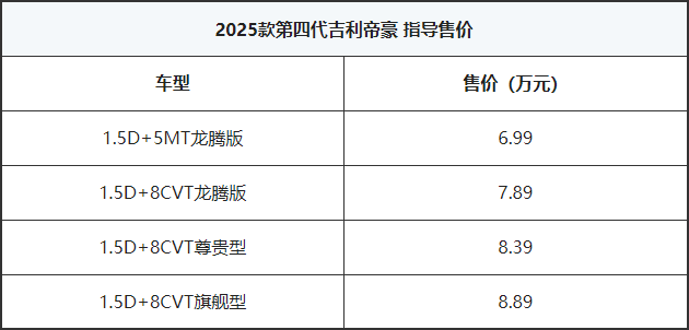 7月6日,吉利品牌旗下紧凑型轿车——2025款吉利第4代帝豪正式上市,新车共推出4款配置,售价区间为6.99-8.89万元。同时,新车作为改款车型,在外观与配置方面进行了优化调整,同时使用了吉利全新的银色logo以及银河os车机系统应用上新等。