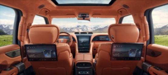 内饰方面,仰望u8采用星环座舱,内饰设计颇具层次感,看起来很稳重,给人感觉都不错。中控台上带有三块大屏,使用的仰望link智能网联系统,内置了比亚迪和高通定制开发4nm 5g芯片,支持全场景智能语音(四音区独立唤醒、四音区识别、全车全时免唤醒、连续对话、可见即可说)等功能。另外,前后排共3处无线充电,并支持50w快充。
