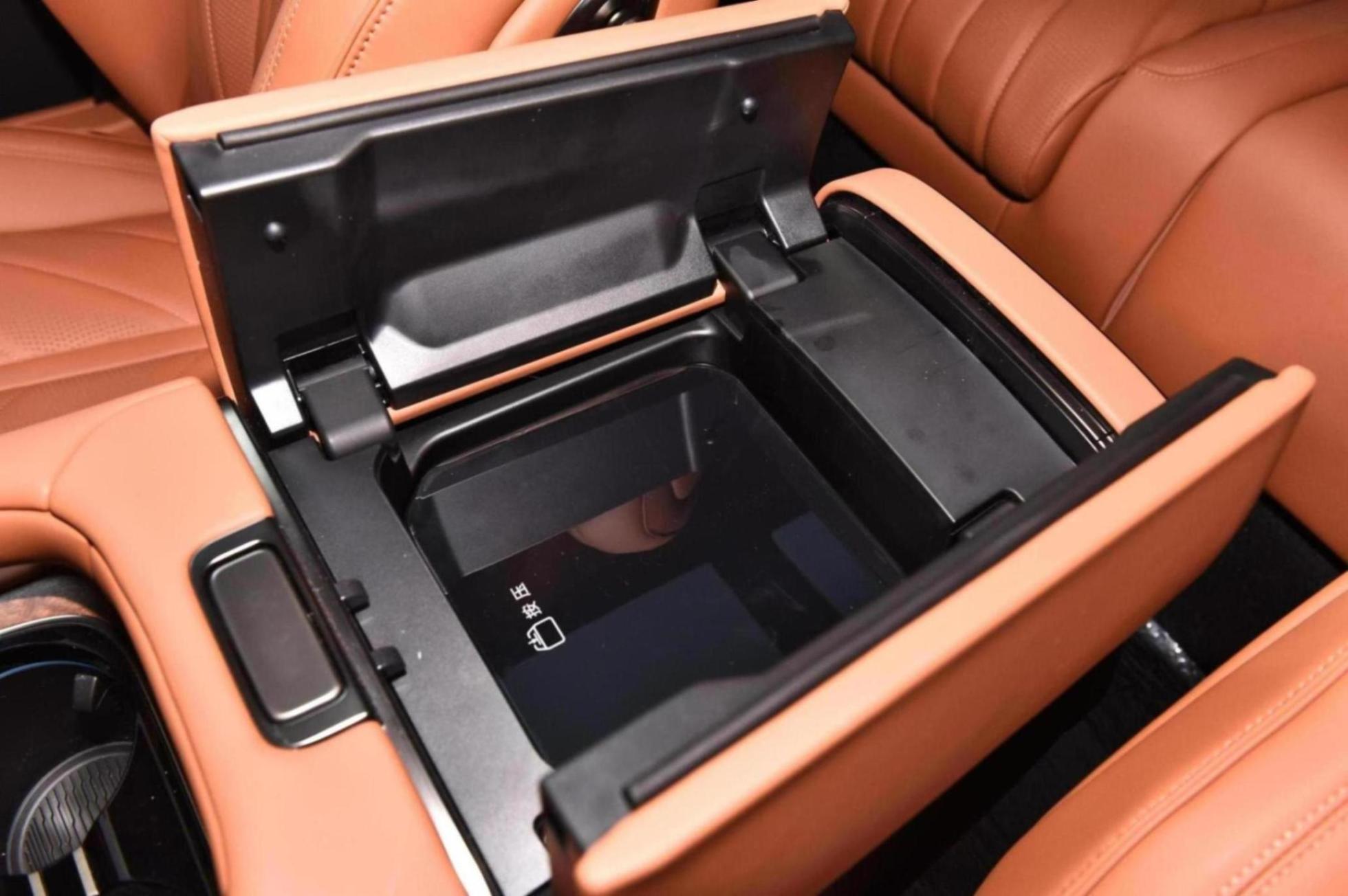 座舱方面,采用2 3的5座布局形式,座椅采用nappa真皮打造。为了兼顾舒适性仰望u8还配备了智能随动座椅,可根据实时路况信息,主动支撑腰部侧翼,为用户腰部、背部提供更强有力支撑。值得一提的是,中央扶手下方还有一个小冰箱,可以制冷 -6~6°c,保温 35~50°c,最长12小时延时断电功能并且拥有物品防遗忘提醒功能。