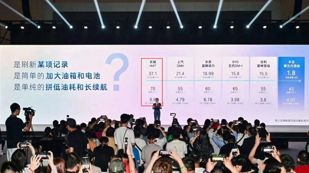 首先“躺枪”的就是长城hi4-t,丰田方面给出这套技术在车型上的核心数据为电池容量为37.1度,油箱大小为70l,wltc油耗水平为8.8l。我们简单查询了一下数据,发现丰田汽车公布的数据对应的车型,就是坦克500 hi4-t,一款车长超过5米的硬派豪华越野车产品,而且8.8l的亏电油耗,也是长城方面给出的。