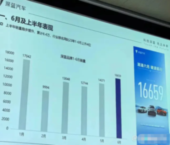 今年上半年,深蓝汽车的销量实现了稳步提升,累计销量达到8.4万辆,行业排名同比上升了4位。特别是在6月份,深蓝汽车的销量达到了16,659辆,同比大幅增长了107%。深蓝汽车ceo邓承浩表示,公司目标是在今年第四季度实现月销量3万辆。