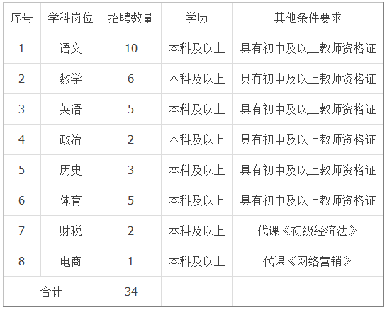 根据工作需要,临沂市高级财经学校委托山东智库教育发展有限公司面向社会公开招聘劳务派遣教师34名。有意者请于8月13日前将报名资料电子版发送至指定邮箱。