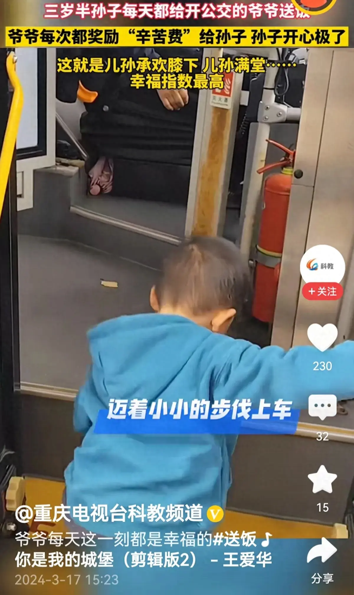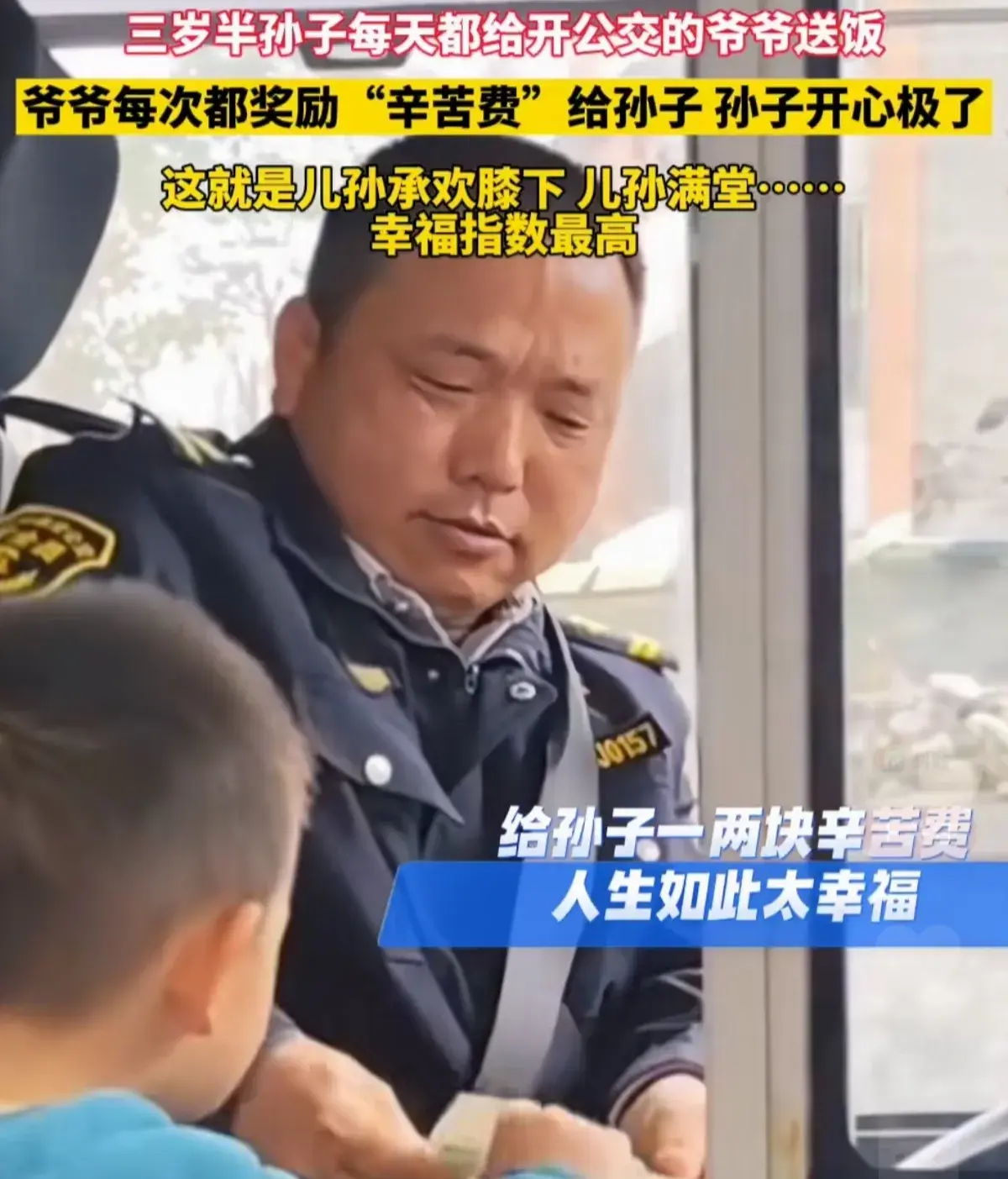 在这个瞬息万变的世界里,一则暖心的故事让我们重新感受到了家庭的温暖。一位年逾花甲的爷爷,每天都能收到他三岁半的孙子开的"公交车"把他送饭。而爷爷则慷慨地给孙子发放"辛苦费",让孙子开心得不得了。