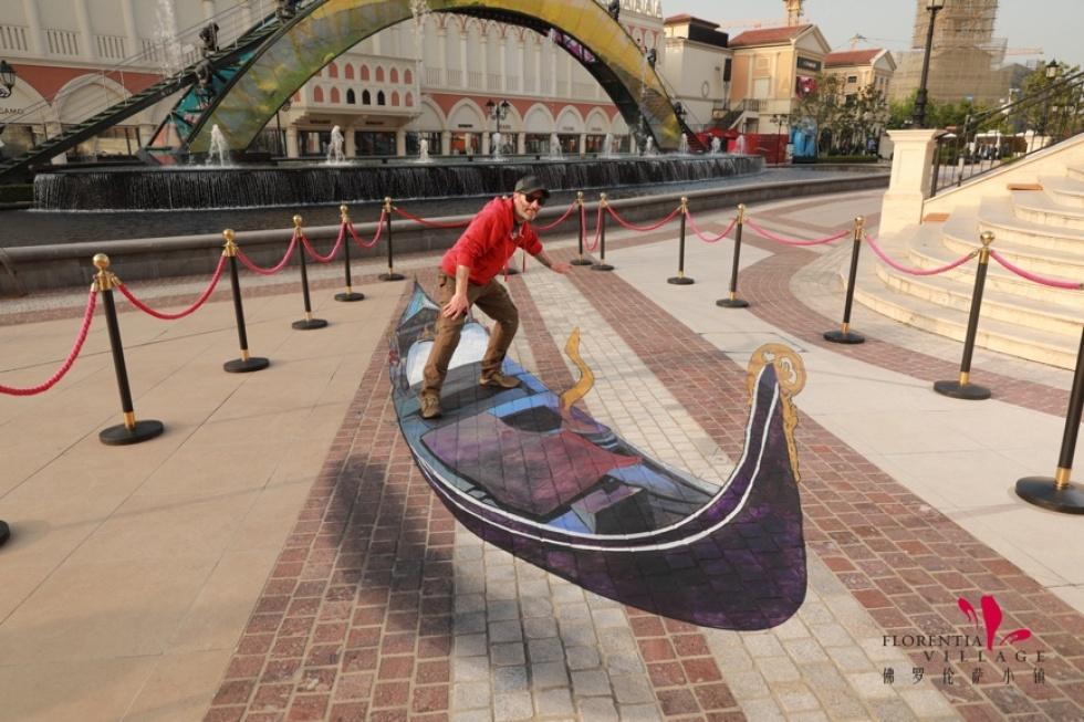“开着”飞行器惬意翱翔,“坐上”贡多拉小船自由穿梭……近日,一系列3d街画艺术作品出现在上海佛罗伦萨小镇,以立体视觉艺术连接现实与虚拟世界,邀请市民游客踏入一场充满无限想象力的艺术梦境。