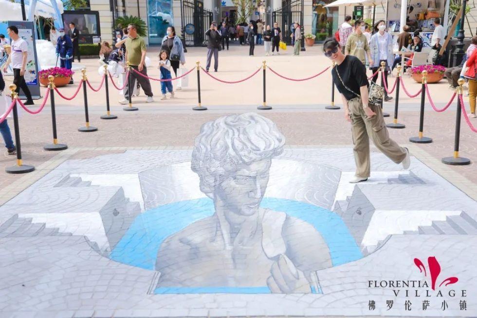 这组“迷失在意大利”系列3d街画艺术作品,由小镇联手意大利3d绘画艺术家cuboliquido共同打造。作品从意国风光及文艺复兴时期的名家作品中汲取灵感,创作《神秘飞行器》《活力米兰之旅》《漫步托斯卡纳》《浪漫贡多拉》《艺术之光大卫》《精妙自乘桥》《抱银鼠的女子》等7幅3d立体街头艺术作品,并借助丙烯颜料、意大利传统粉笔画以及pvc数字打印等艺术手法加以呈现。漫步于上海佛罗伦萨小镇的经典地标之中,市民游客可徜徉于艺术家的奇思妙想之间,沉浸式体验古典与现代的精妙碰撞。