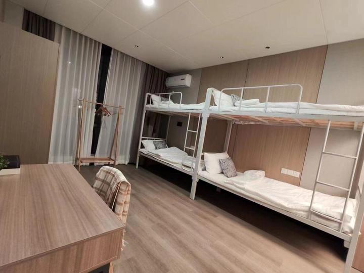 记者看到,单人间和双人间的房型和酒店大床房、双床房类似,而四人间则是上下铺的布局。每间房都有书桌、晾衣架,且独立卫浴、干湿分离,每层楼还设有公用洗衣房、厨房和休息室。