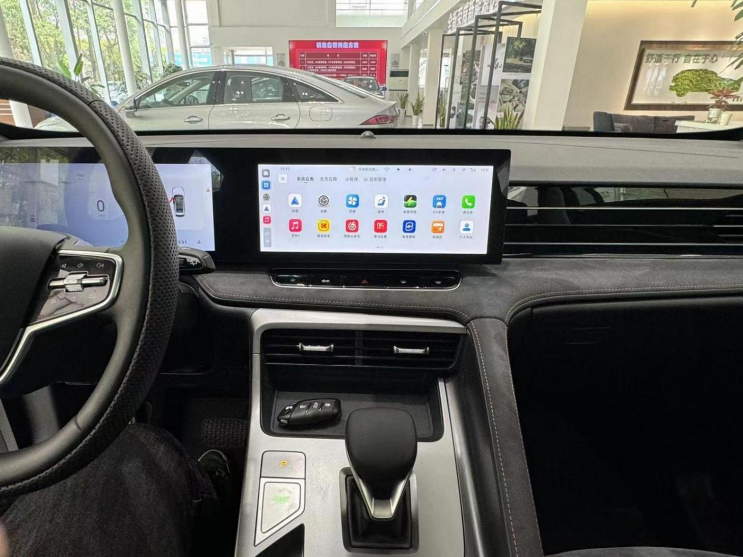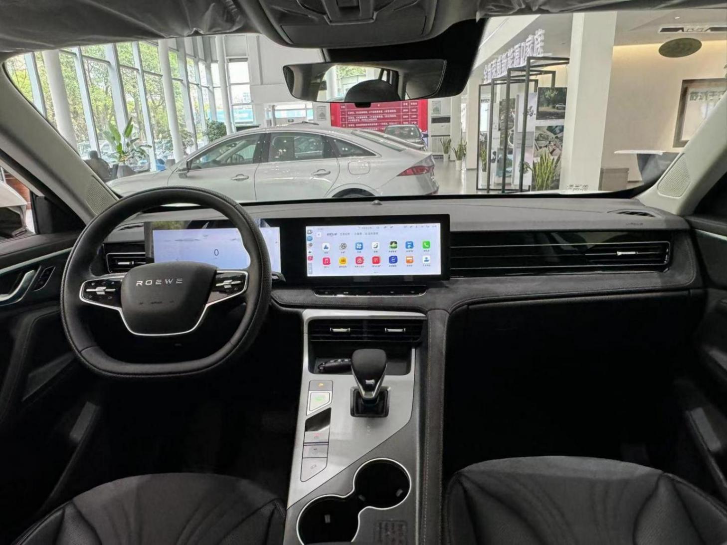 车内同样采用了和第三代荣威rx5相同的设计风格,配有双12.3英寸一体式联屏和贯穿式空调出风口。中央通道区域呈倾斜式布局,方便进行操作,下方还进行了镂空处理,可以放置一些闲置物品。不同的是,三辐式方向盘换成了双辐式,水晶电子挡杆换成了皮质包裹,并采用黑色和米色混搭的内饰配色,使其更加贴合自身新能源车型的身份。