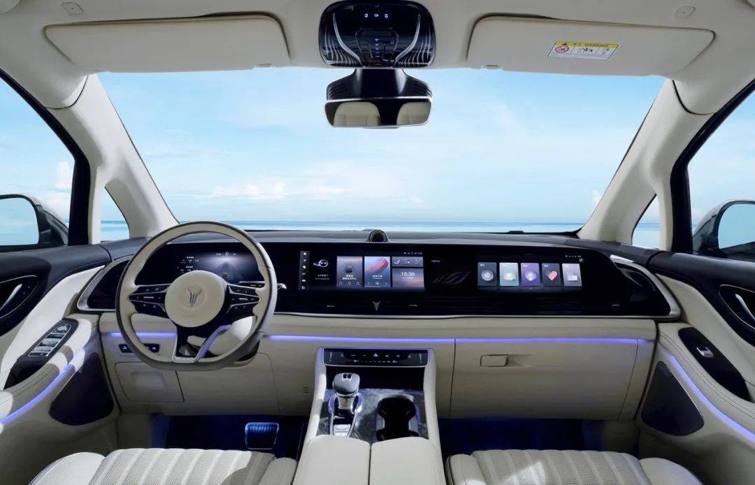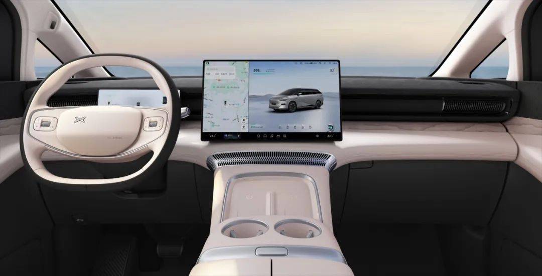 内饰方面,小鹏x9没有与外观一样主打未来与科技,而是追求舒适和灵活,也正是mpv用户的核心需求。中控的设计非常简洁,一块17.3英寸的触控屏与一个两幅方向盘,就是前排的视觉重心,但细节之处尽显精致,触手可及之处都使用了软包材质,再比如中控屏下方巧妙地设置了一个金属镂空的空调出风口,既起到了饰条作用的同时将中控的上下部分进行了很好的衔接,又巧妙地融合了功能性。